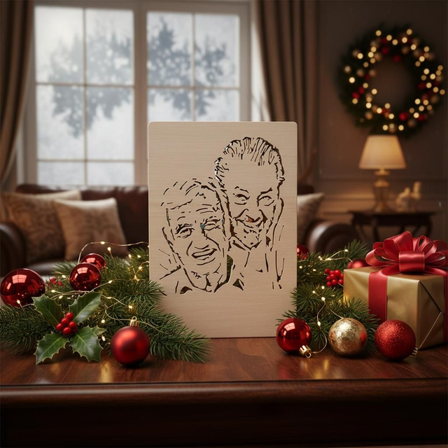 Portrait d'Alain Delon et Jean-Paul Belmondo découpé à la scie à chantourner dans du peuplier. Format A4