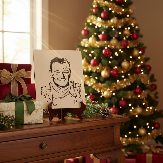 Portrait de John Wayne découpé à la scie à chantourner dans du peuplier. Format A4 épaisseur 18mm