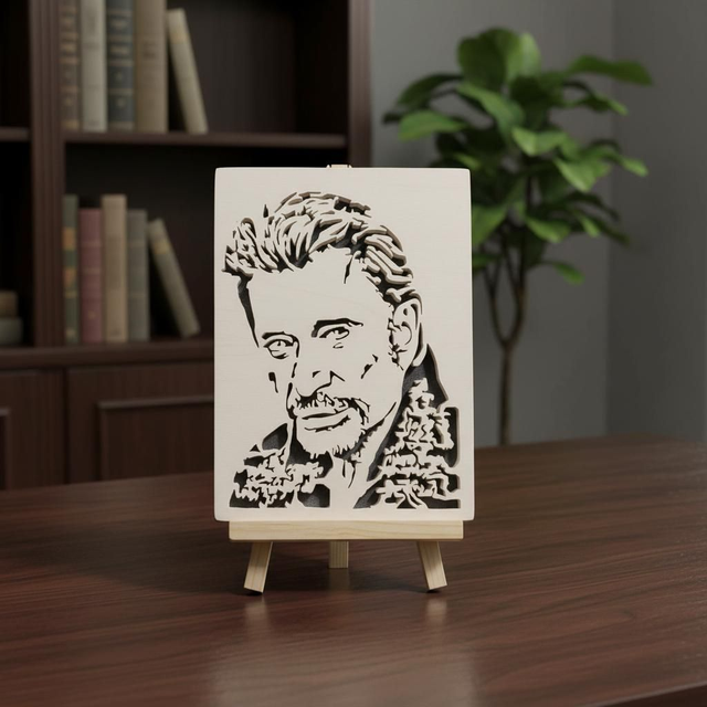 Portrait de Johnny Hallyday découpé à la scie à chantourner