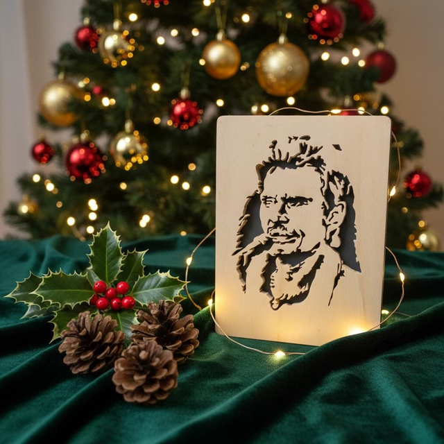 Portrait de Johnny Hallyday découpé dans du peuplier. Format A4