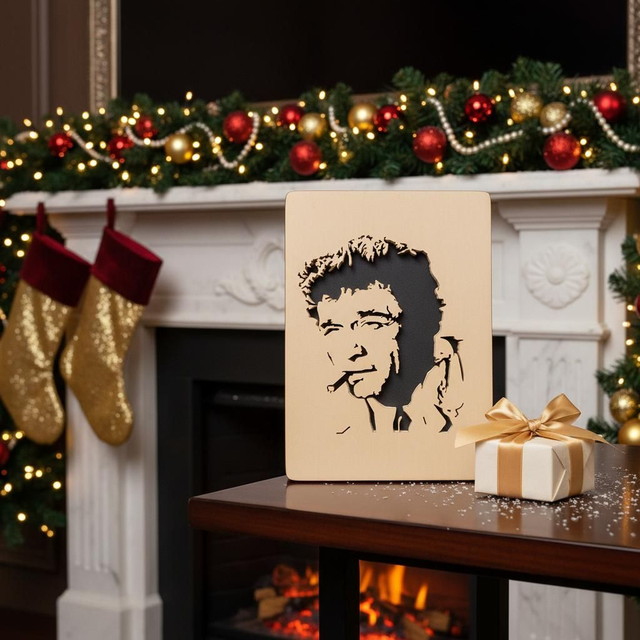 Portrait de Colombo découpé à la scie à chantourner dans du peuplier. Format A4 épaisseur 18mm